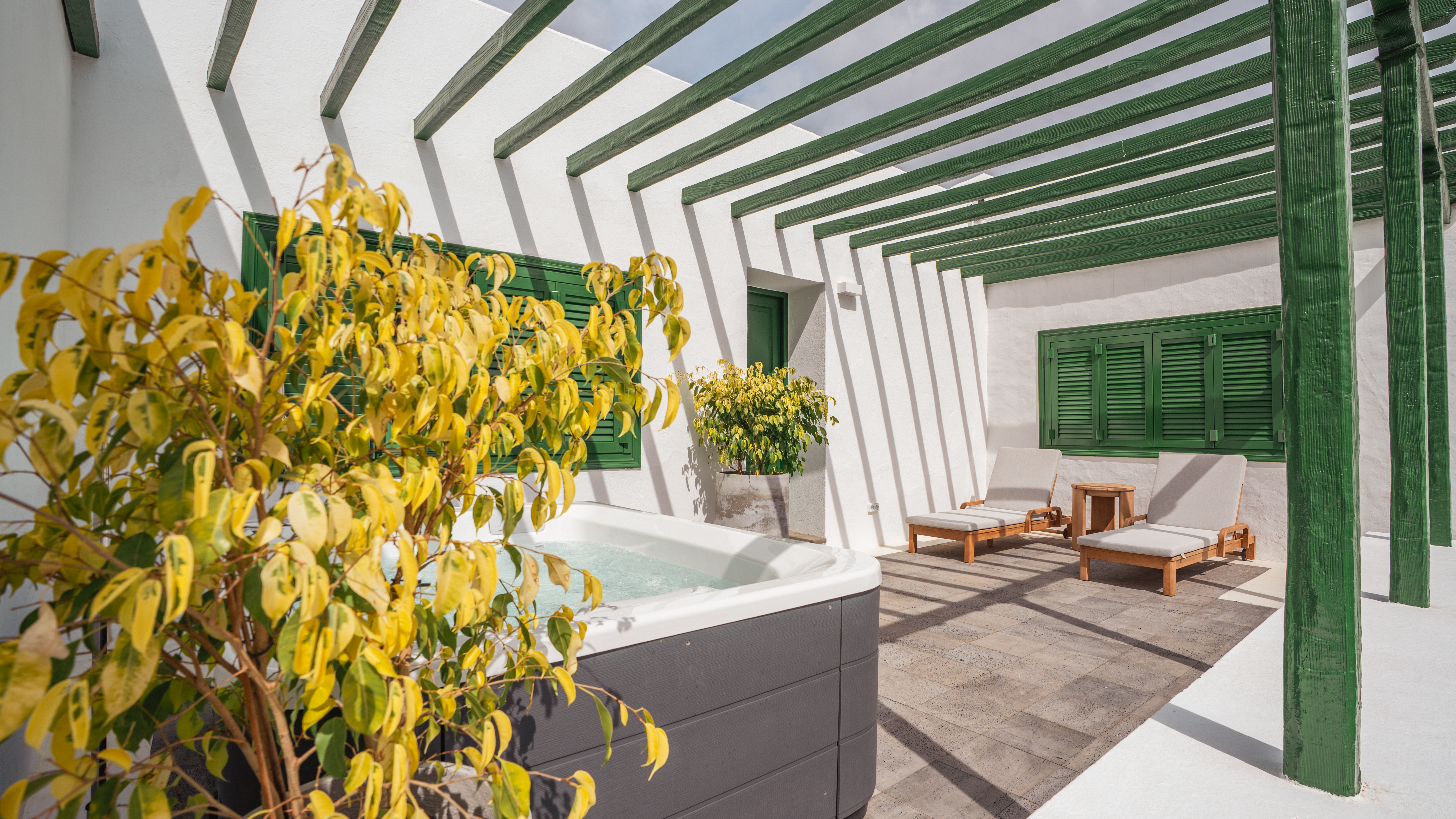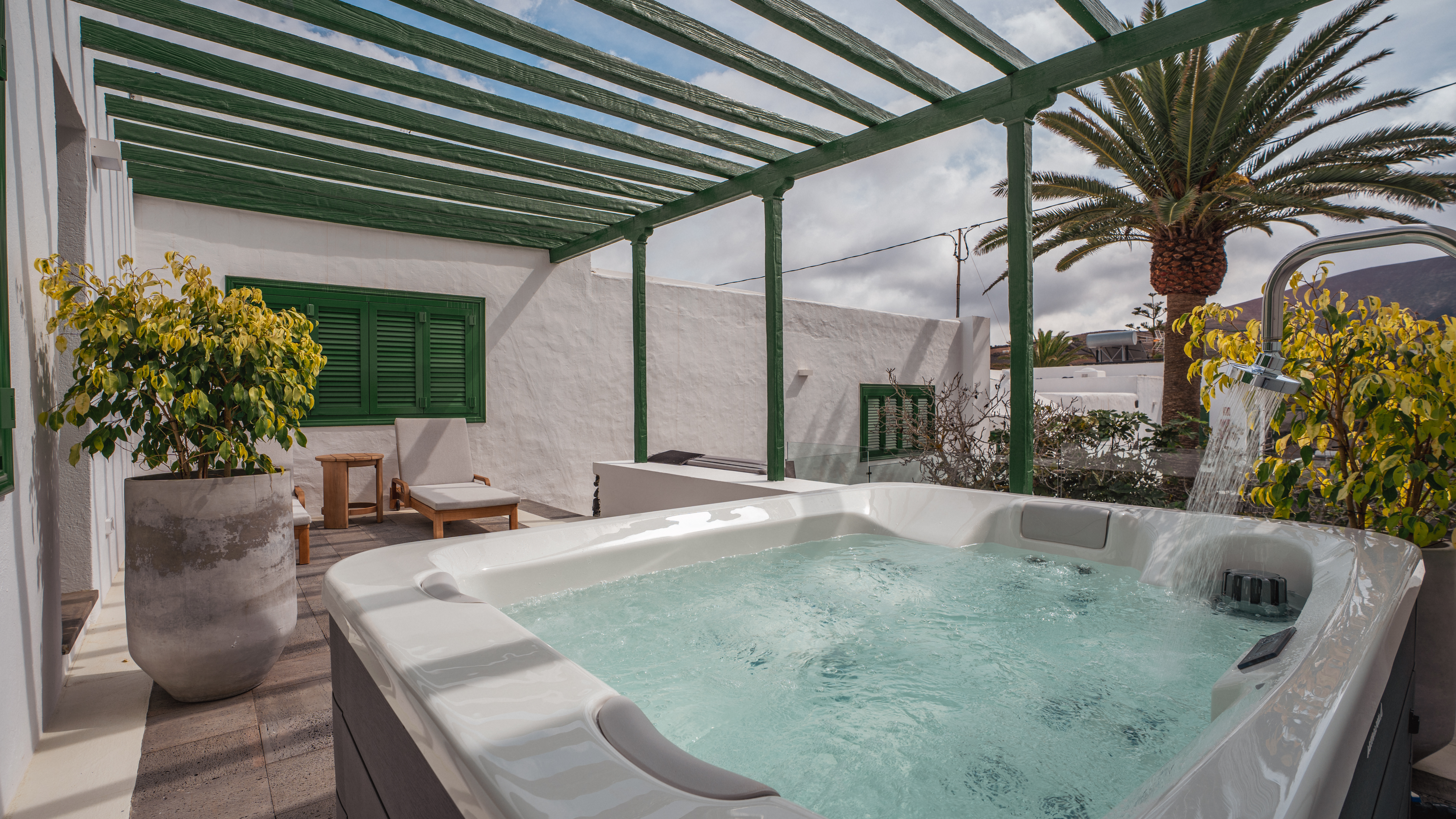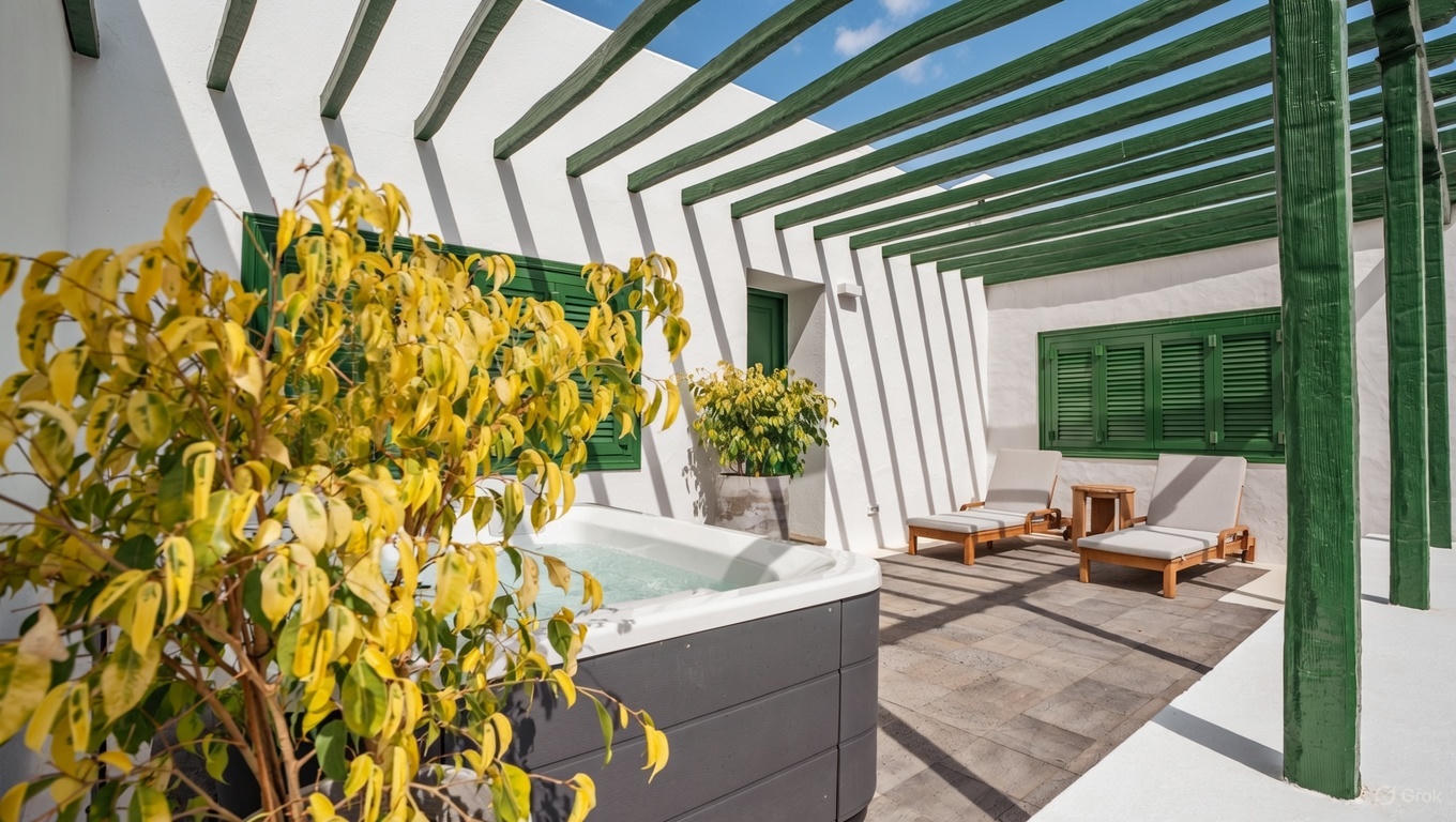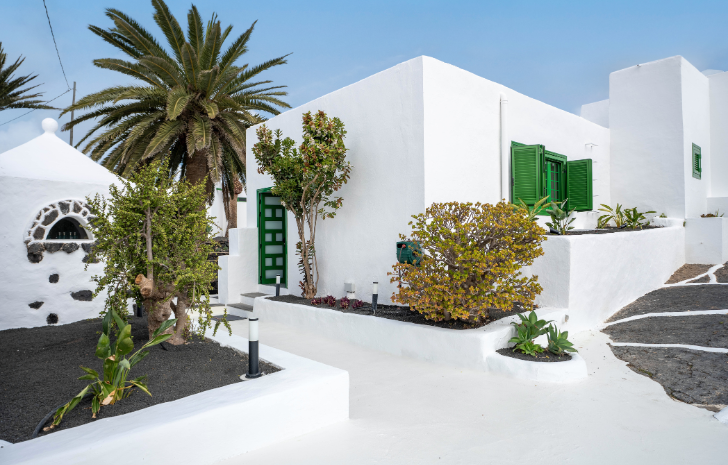 La villa incluye parking propio y está rodeada de jardines comunes cubiertos de picón volcánico, decorados con buganvillas, parras y una cuidada selección de cactus y plantas de la zona que evocan la esencia natural de la isla.
